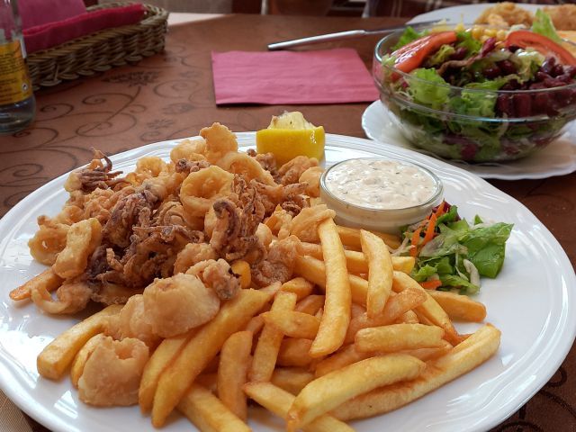 Ponedeljek: pečenka od nedelje, ocvrte kruhove rezine, zelena solata