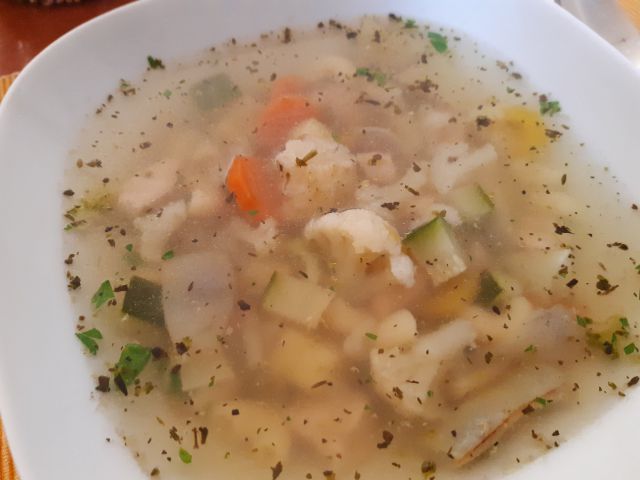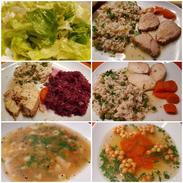 Danes goveje- kokošja juha, zelenjavna juha, riži biži, ostanki od včeraj, ledenka solata z vrta