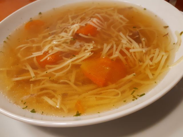 V soboto smo imeli govejo juho z rezanci in ostanke s praznovanja.