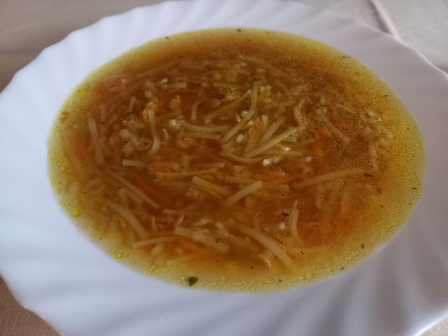 V petek mesno-zelenjavna juha, kasneje smo odšli na praznovanje.