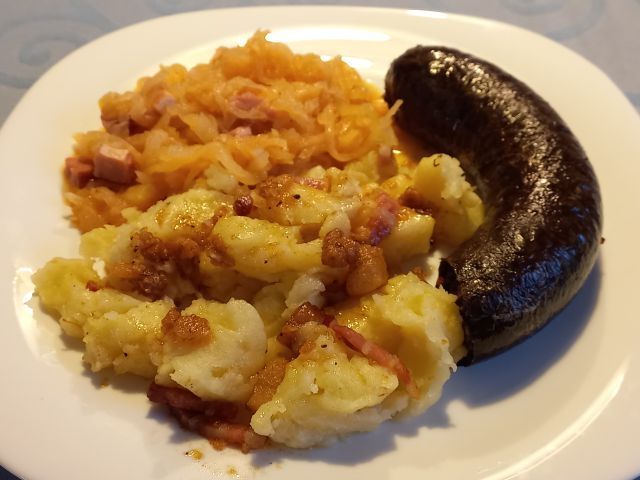 Včeraj: piščančja juha z rezanci, polpeti v paradižnikovi omaki, krompir, zeljna solata s fižolom
