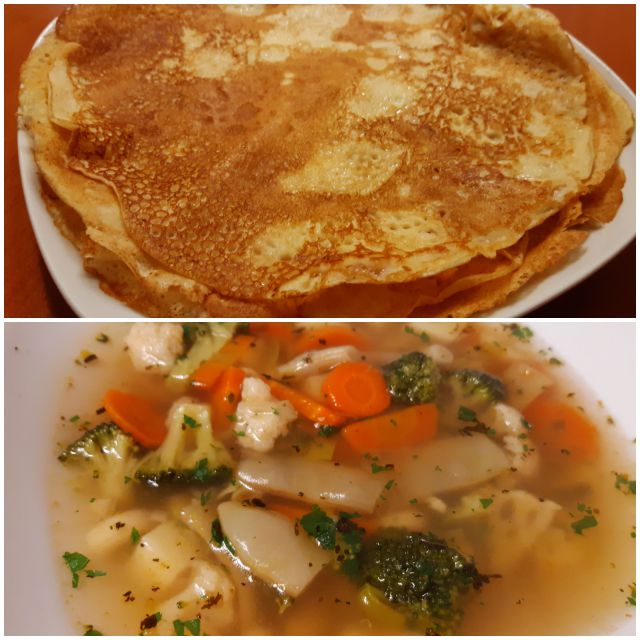 Danes zelenjavna juha in palačinke po želji. Zadnji koščki novoletne pite.