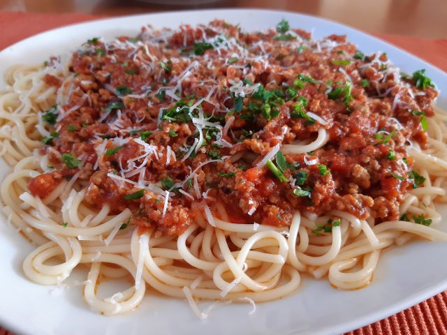 Danes špageti z bolonjsko omako, zelena solata z bučnimi semeni