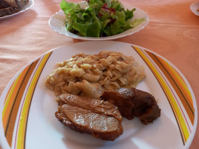 Včeraj: goveja juha z rezanci, domači polpeti, blitva, krompir v kosih, kitajsko zelje s fižolom