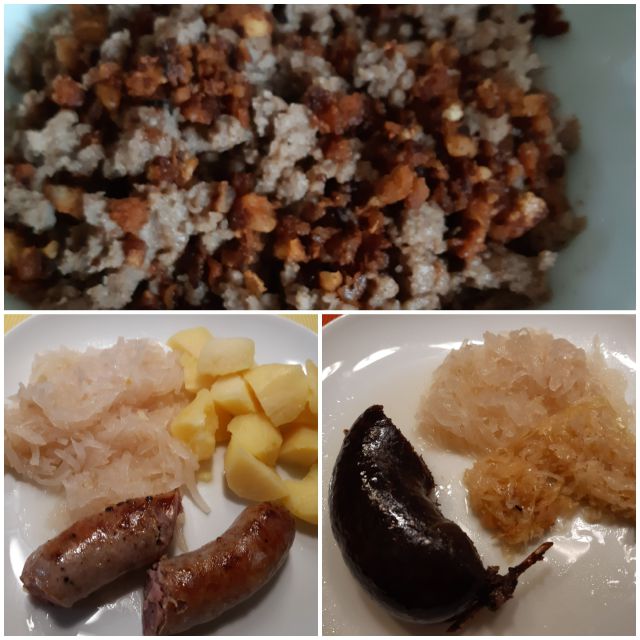 Danes k.repa, k.zelje, kuhan krompir, žganci z ocvirki, pečenica, krvavica