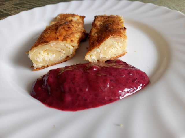 Vampi po tržaško, palačinke s skuto in kokosom, gozdni sadeži