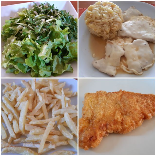 V ponedeljek ostanek praženega krompirja, zrezki s sirom, pomfri, pariški zrezek, z. solata z regratom