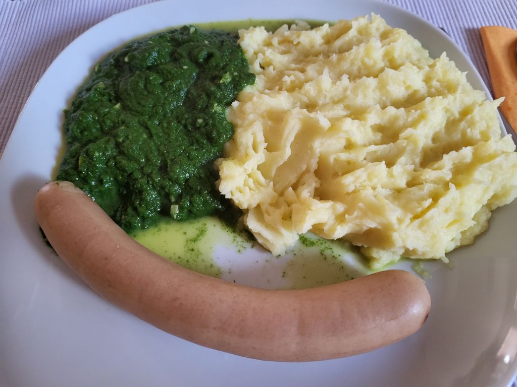 4.3 goveja juha z vlivanci, špinača, pire krompir, hrenovke