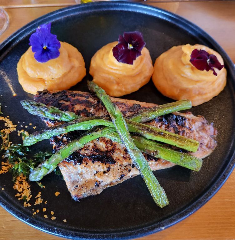 jaz lososa s šparglji in sladkim krompirjem...