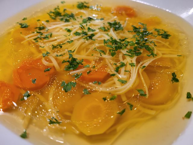 V soboto goveja juha z rezanci, stefani pečenka, pečen krompir, pečeno korenje, mešana solata