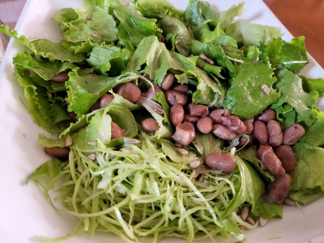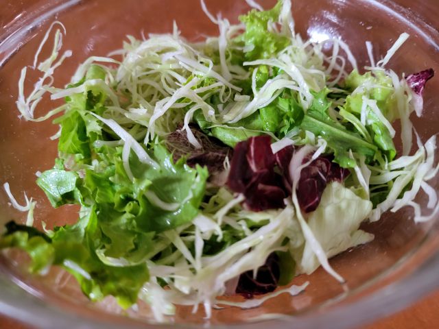 Danes ostanek mesa od včeraj, pražen krompir, mešanica solat z vrta