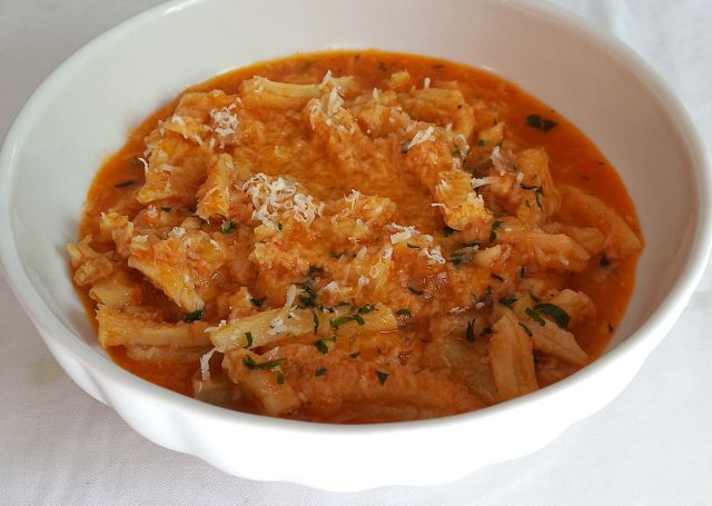 Danes goveja juha z rezanci, sesekljana pečenka iz kuhane govedine, gobova omaka, spätzle, solata, smuti.