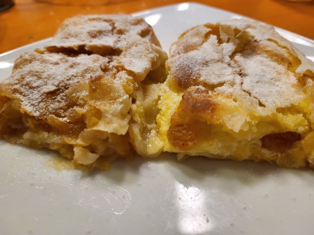 Danes krompirjev golaž kruh, skutni in jabolčni štrudelj