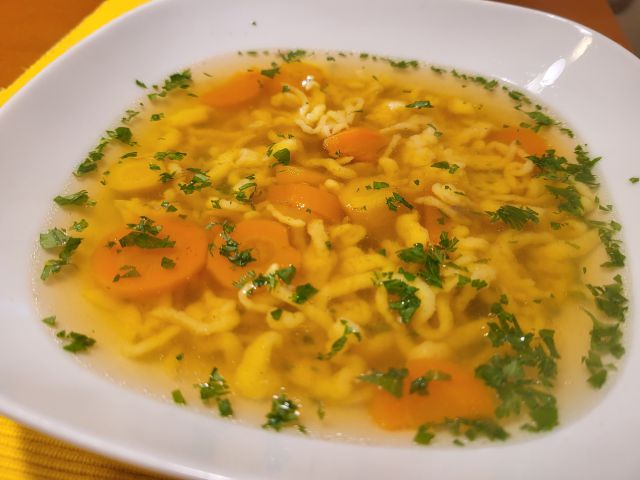 V četrtek goveja juha z vlivanci, preostanek musake, solata
