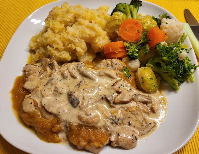 V četrtek sv.pečenka v omaki, jurčki, pražen krompir, zelenjava, solata