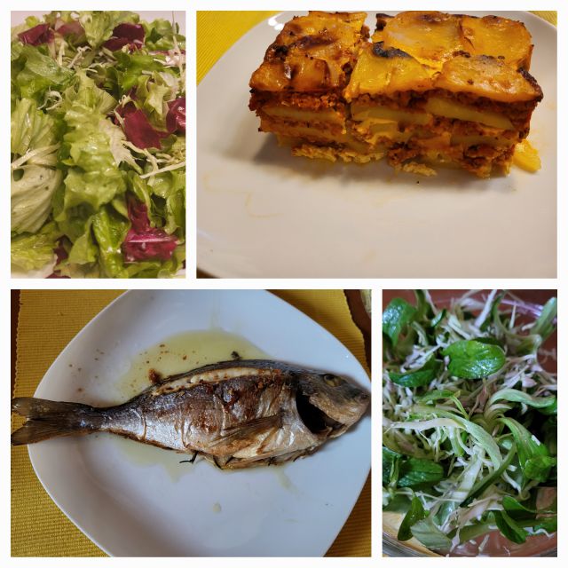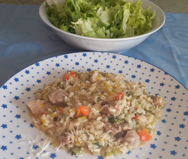 Rižoto z zelenjavo in sv.ribico; zelena solata; langoši/poderane gače/flancati