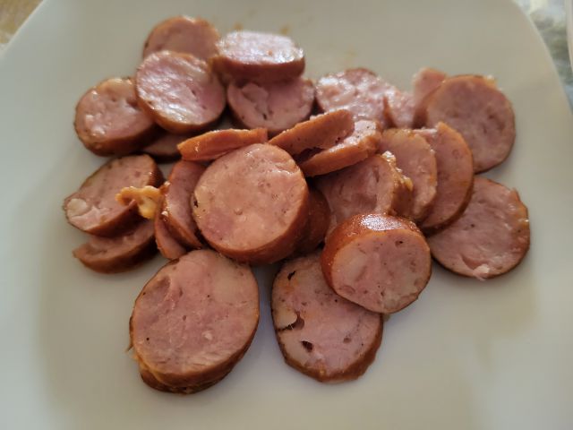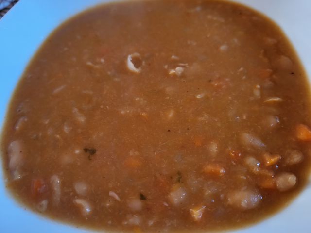 Danes za moža pasulj s klobaso ( iz zaloge), zelenjava, kruh, tortilje s piščančjim mesom