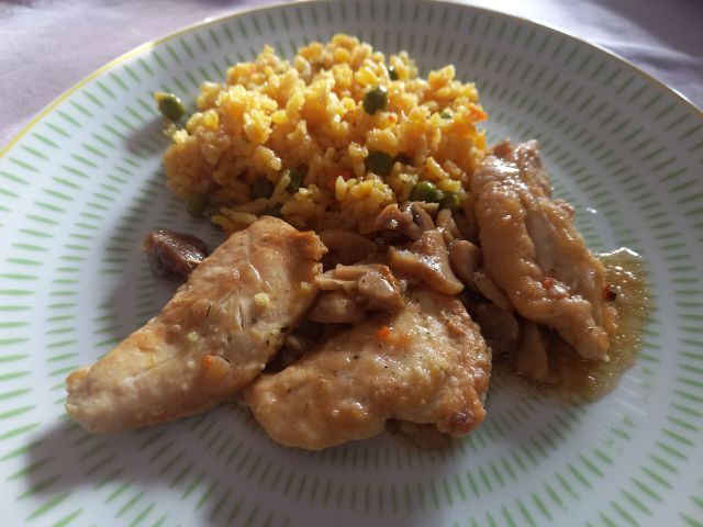 Piščančja juhica; piščančji zrezki v jurčkovi omaki; motovilec in radič