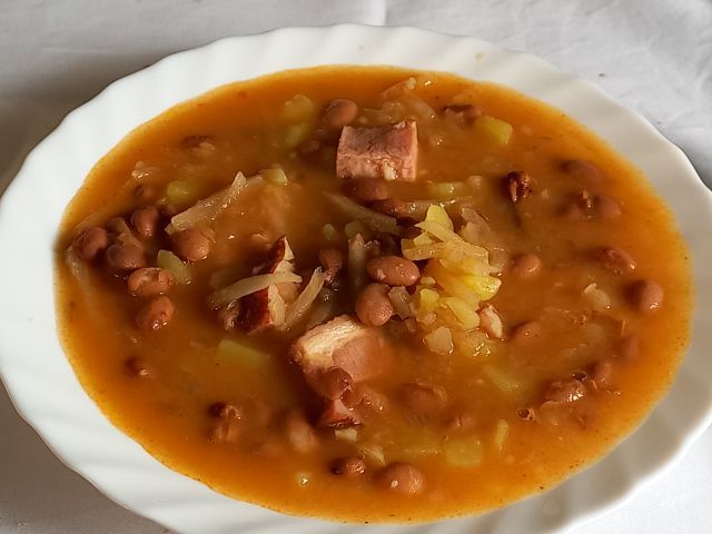 Pašta fižol in prekajene rebrce.