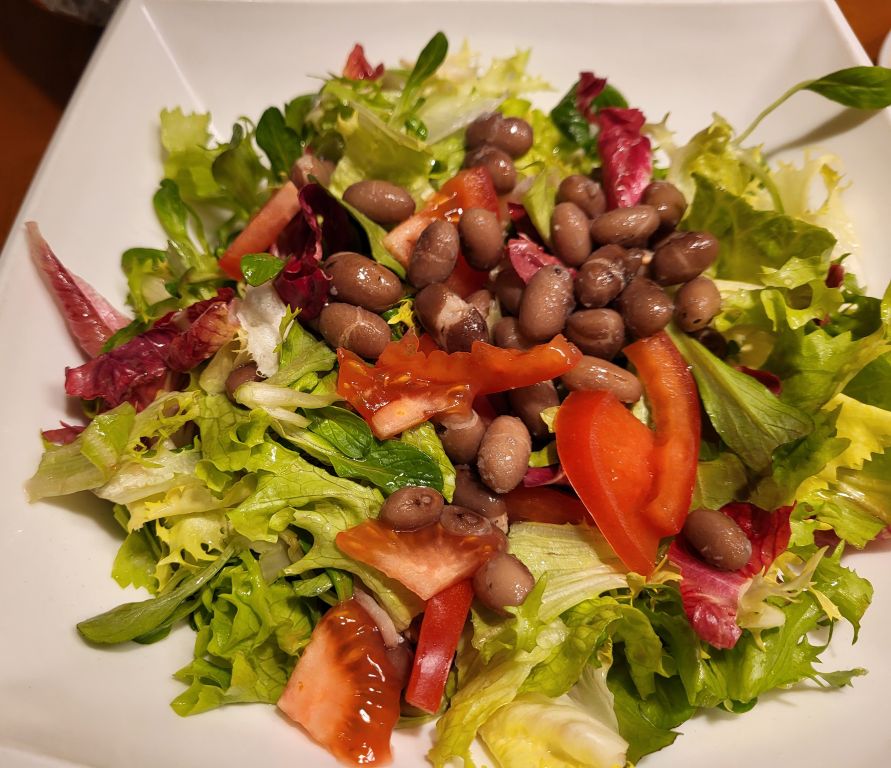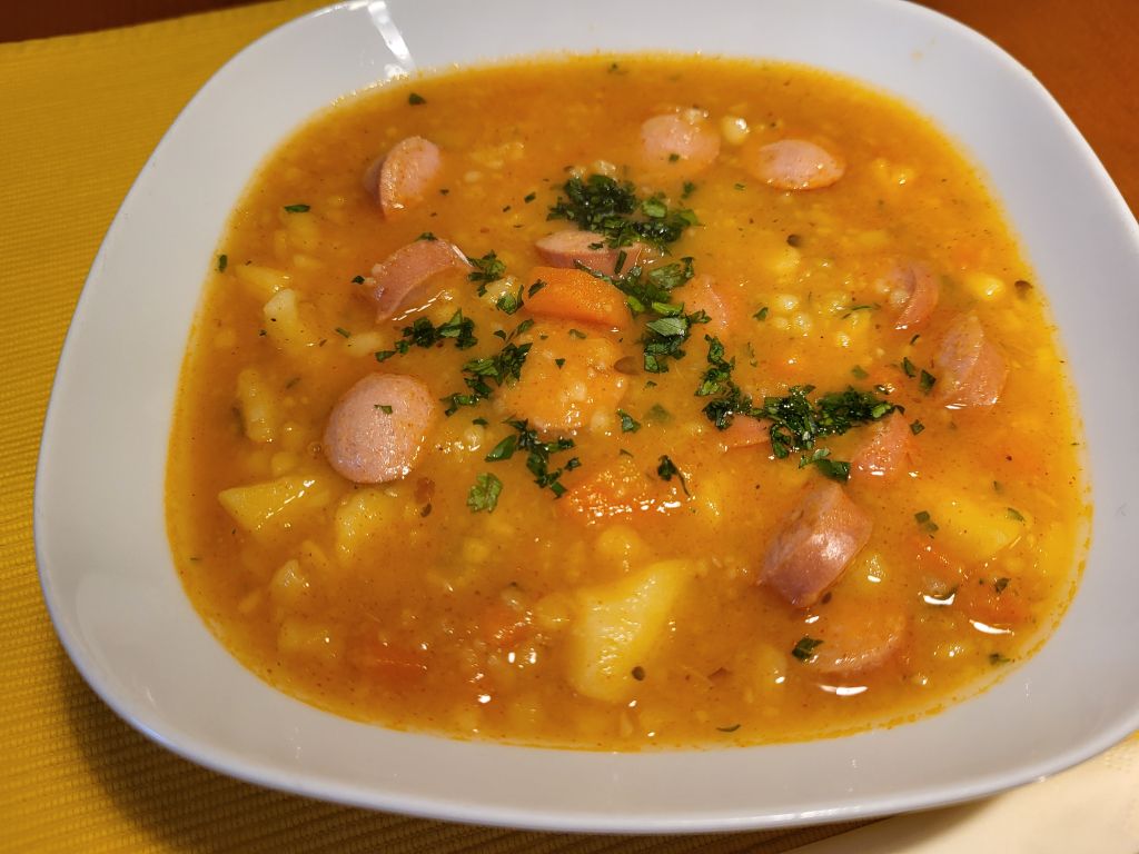 6.2 fižolova juha, kranjska klobasa, zame sardele, solata