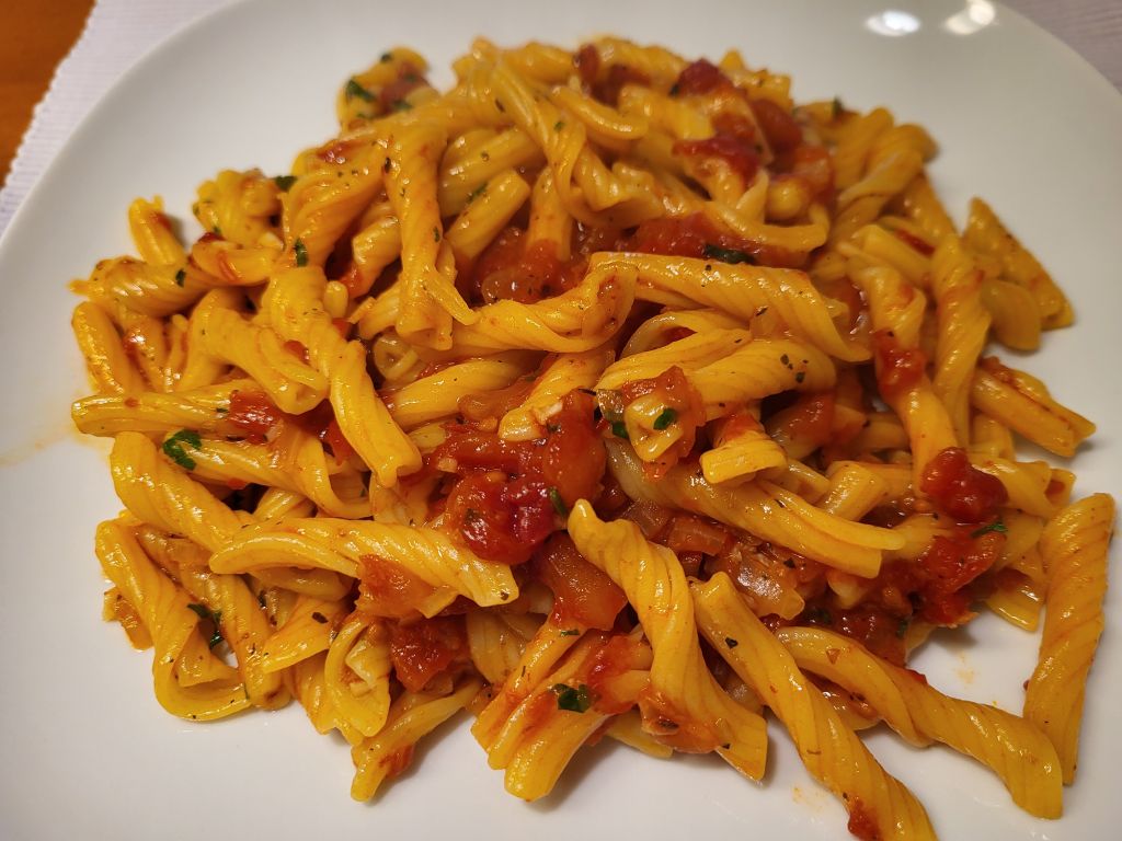 10.2 fuži s paradižnikovo omako s čilijem in solato