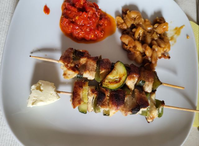 27.5 pleskavice, nabodala, prebranec, ajvar, paradižnikova solata, kruh