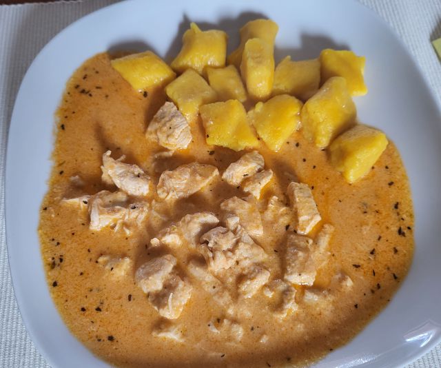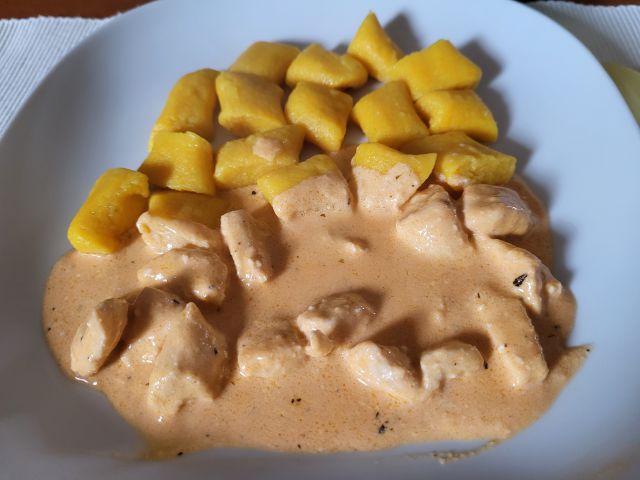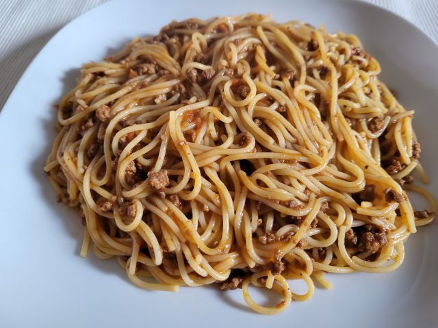 29.5. jaz ostanek piščanca s sirovo omako, bučni njoki iz zaloge, sin in mož špagete bolognese, motovilec