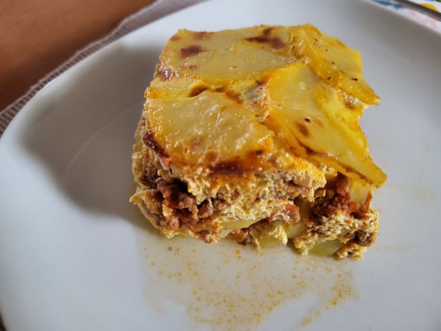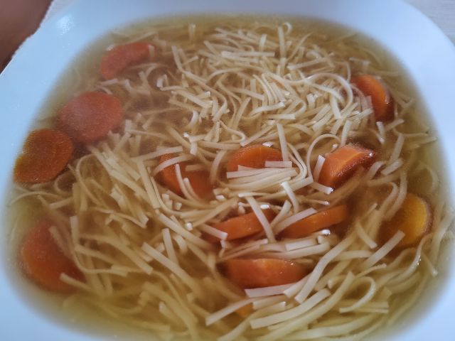 4.6 goveja juha z rezanci iz zaloge, ostanek musake, solata