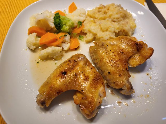 2.avgust za kosilo goveja juha z rezanci, stefani pečenka, pečeni perutki, pražen krompir, zelenjava solata
