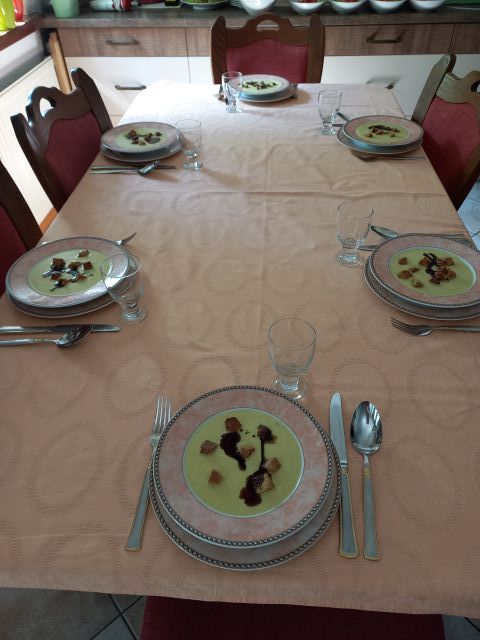 Majhno praznovanje... bučna juhica; pečen nadevan piščanec, sv.rebra, pečen krompir; mešana solata (zelena,  zeljnata,  paprika,  paradižnik,  slan sir); kava, tortica