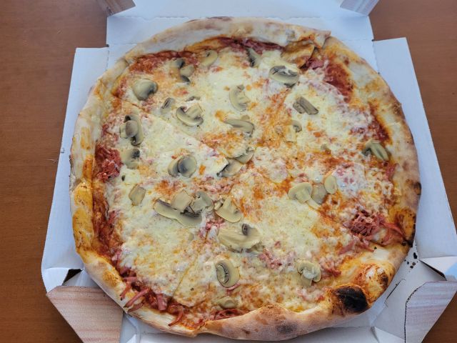 sin pizzo, mož hrenovko in zelje v solati, jaz krompirjevo solato in sardele
