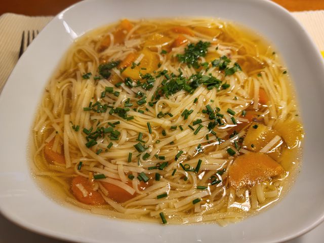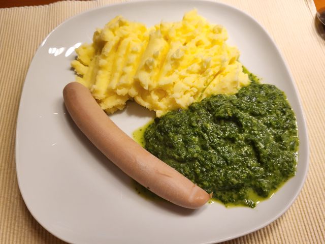 23.9 goveja juha z rezanci, špinača, pire krompir, hrenovke