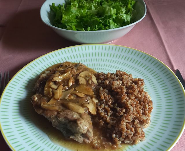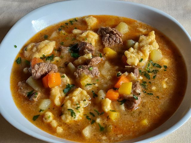 Kremna juhica; ajdova kaša na slanini, vratovina v jurčkovi omaki ; zelena solata
