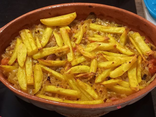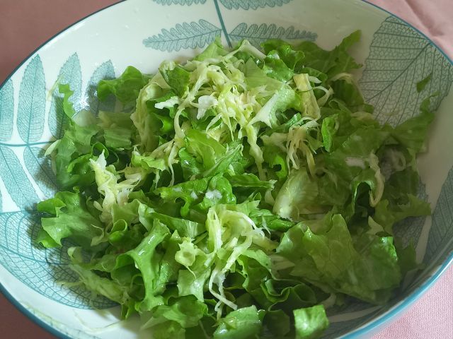 Zelenjavna juhica; džuveč, zelena solata z zeljem