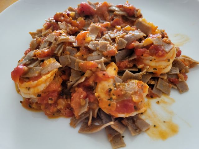 3.10 testenine z zelenjavno omako, zame ajdovi z gamberi, solata