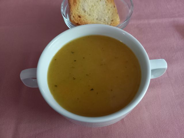 Petek, goveja juha, govedina, pražen krompir, pohane bučke,solata, kava