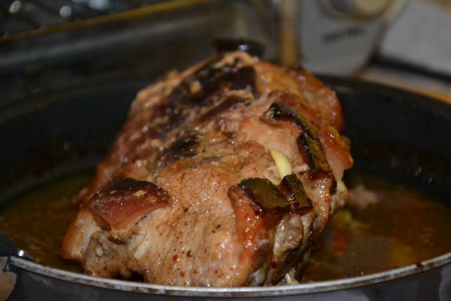 Mi smo čisto "poletno" razpoloženi, smo tašči željo izpolnili in na morju spekli en krasen del odojka, tistega s karejem ... no, po naše je bila marinada, iz sojine omake, medu in čilija ter česna:
