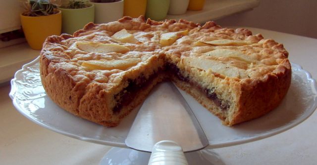 Tinky BinkyDanes: zelenjavna mineštra, pol krožnička včerajšnje pašte, nekaj rdeče pese v solati in čokoladno-hruškova pita