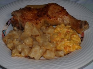 Pri nas pa je danes po želji najmlajše slavljenke goveja juha z rezanci, polnjena piščančja prsa brez kosti (s kruhom), poleg pečen krompir, zelenjava na maslu, zelena solata, sladoled. Popoldne še jagodna tortica in praznovanje s peko na žaru in nekaj solatami.