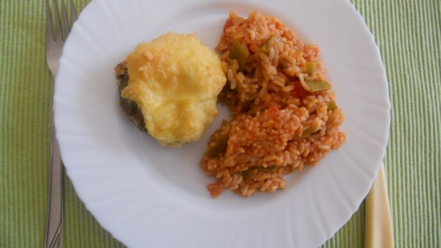 danes svinjski zrezek, rižota z paradižnikom in pečene paprike z topljenim sirčkom (našla okusen način za porabit zeleno papriko z vrta ki smo jo po nesreči vsadili namesto rdeče, joj),