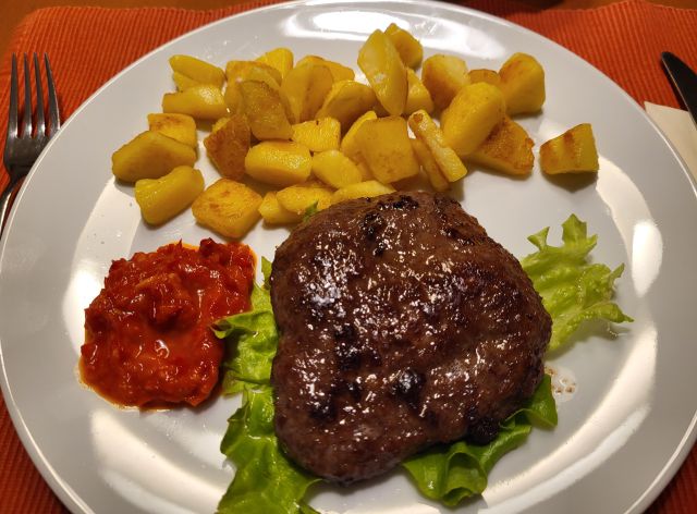 V torek pražen krompir, meso po dunajsko ( zame popečen), mešana solata