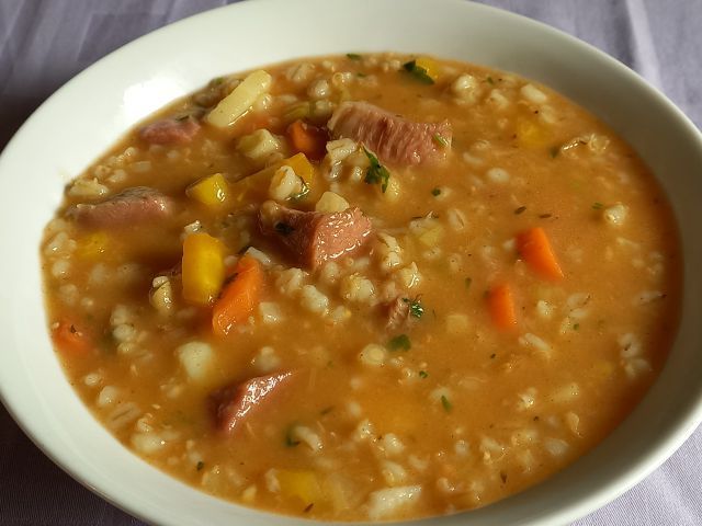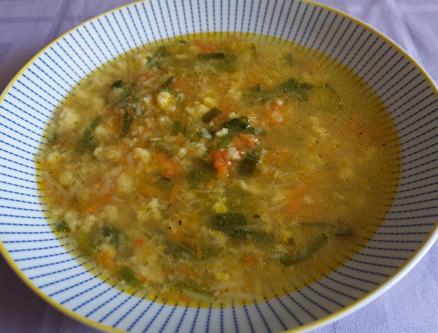 Danes bučkina juha, jagnje iz pečice, njoki, solata iz vrta, makove palačinke z malinami. Kava.