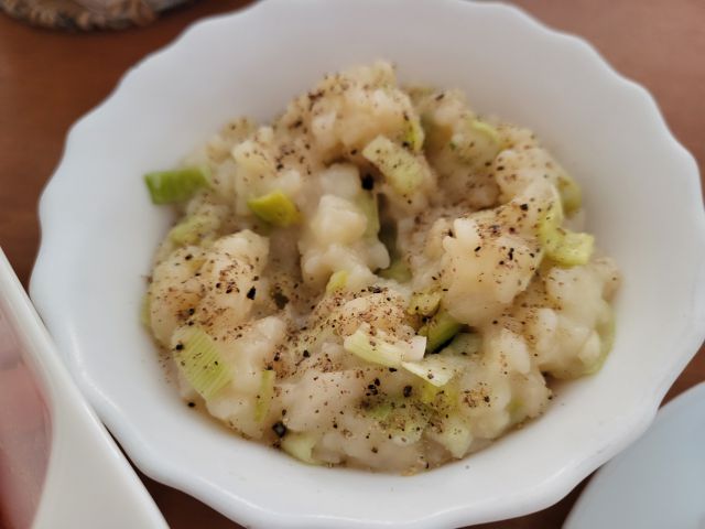 Nedelja: Špinačna juha, puran v smetanovi omaki z gorgonzolo in pečen krompir ter kumarična solata.