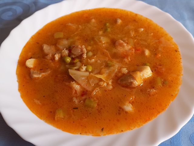 Sobota: zelenjavna juha, mleto meso s paradižnikom in papriko, testenine iz sladkega krompirja (batasta), solata iz paprike in kumaric, motovilec