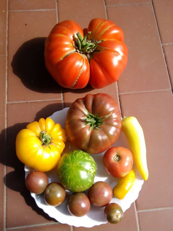 najprej sem se zadnjič zgubila na križpotju, potem sem hvalabogu videla, da Ežoj itak ni računal name, ker zame ni bilo pogrinjka (je pa res, da obvlada fotografiranje in se me na fotki ni videlo), potem sem tam na tistih križiščih zavijalo tako, kot mi je trenutno pasalo... Zdaj že 2 dni kuham džem, pečem štrudelne, kuham kompote, pakiram za v skrinjo.... Tako da v bistvu nikoli ne zaideš, pravzaprav je dobrodošlo kdaj zaiti z asfaltirane poti. In z makadama. Na kolovozih je ful romantično (Bronhi, lakše se diše press) Danes na sporedu: ostanki koruzne mineštre (to je ena taka hvaležna jed; se čez kakšen dan zgosti in jo lahko krasno podaljšaš) vse, kar se je našlo v hladilniku, naseckano in dano v pekač, čez to pa malo špehca, malo perutničk, en L-bone... Na lagarju imamo ribje konzerve in vino. Ni panike. japaja