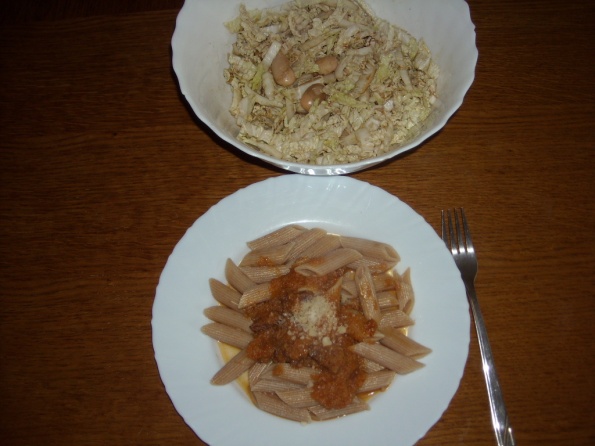 danes : našpikana svinjska ribica ( sardelc zaradi burje ni ), domače testenine neznanih oblik, dušeno zelje,