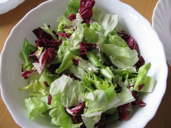 Danes za jutri (pri sosedovih): zajček in krompirjevi svalki. Aja, še motovilec s fižolom v solati.