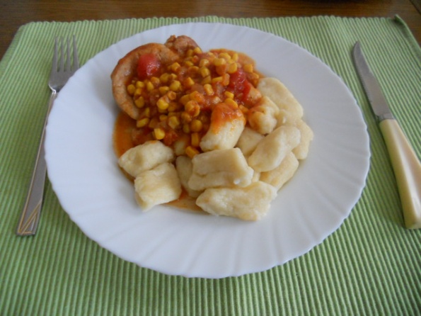 Danes me je kosilo spet čakalo, ko sem prišla domov: svinjski krmenatelc z zelo dobro omako iz korenja, kaper, pa kaj jaz vem česa še, krompir, pesa