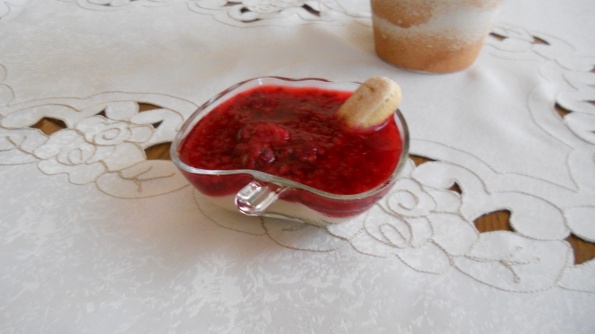 vanilijev puding z malinami