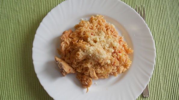 breskva danes- riž s paradižnikovo omako, skodrana endivja s fižolom in koruzo